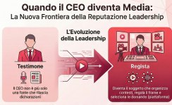 L’infografica che ho preparato con l’aiuto di notebook klm e che accompagna questo contributo prova a sintetizzare questo passaggio. Il primo riguarda l’evoluzione della leadership: dal CEO come testimone, che rilascia dichiarazioni, al CEO come regista, che costruisce contesti e organizza conversazioni.